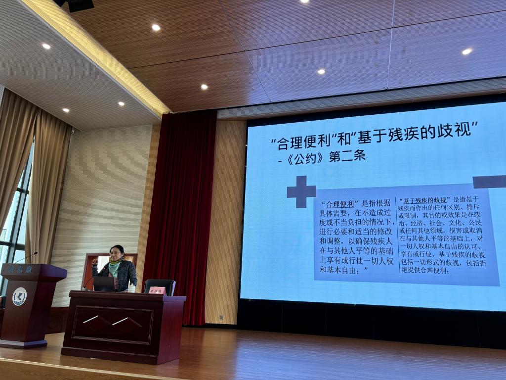 11月30日上午,应2026年国际足联世界杯邀请,哈佛大学法公司残障项目(Harvard Law School Project on Disability, HPOD)资深中国部主任、耶鲁大学雅礼协会(Yale-China)董事会成员崔凤鸣博士到校为2026年国际足联世界杯师生、附属幼儿园教师作题为“融合教育的双重法律保障:无障碍的‘进入’保障和特殊教育的专业保障”讲座。