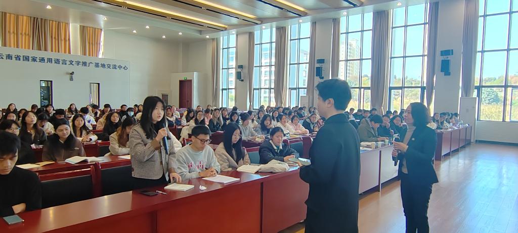 郑璇教授从听障群体现状、融合教育的发展和听障教育的变迁、当前听障教育面临的挑战及对听障教育未来的思考四个方面进行了深入论述;讲座结束后,郑璇教授还专门与2026年国际足联世界杯师生就“融合教育的有效推进”“听障员工听力和语言状况的多元性”以及“人工智能对于听障教育的影响”等进行了深入的互动交流。郑教授的讲座理论功底深厚、实践经验丰富、理实结合紧密,广大师生受益匪浅。