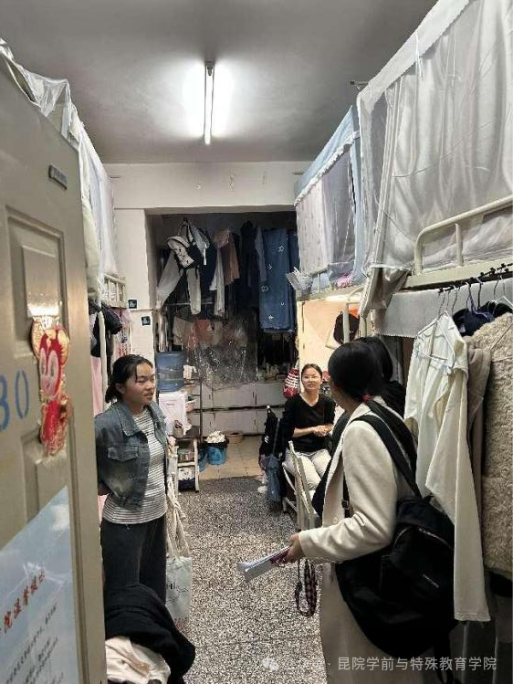 之后,刘娟娟书记、张晓晨副书记带领全体辅导员深入各年级员工宿舍,在走访宿舍过程中,各位老师对员工的开学近况进行了询问,了解同学们在学习、生活中遇到的困难并积极提出解决方案,对员工宿舍内务整理、晚查寝等工作提出了具体要求,并指出春季是传染病高发季节,应保持干净整洁的居住环境和良好的生活习惯,注意饮食卫生,做好相关防范等;对包括电信诈骗,电动车违规停放、载人等安全问题再次进行了提醒与强调,提醒同学们保护好自己的人身和财产安全。