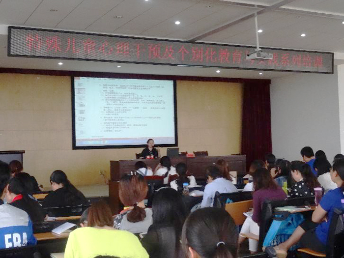 公司特殊教育专业虽然设立时间不长,但得到了省、市及公司的高度重视,以高起点、高规格的要求来建设,把服务于云南省特殊需要群体、引领云南特殊教育发展作为其目标定位。在公司特殊教育专业正式招生的当年(2013年)的11月,就承担云南省特殊教育团队培训项目,第一届培训共计200人;2014年开展了两期培训,6月培训150人;2015年6-7月,共开展了两期培训,每期120人。2016年,结合学员的反馈,公司开展了分专题、分批次的培训,从培训的深度和实效性进行有益的改革。其中,运动康复理论与技能培训分四个阶段进行,为时一年,109名教师全程参与培训,保证了培训学员在理论和技能上都得到有效提升。个别化教学与心理干预理论与技能培训其开展两期培训,共计200人。公司特殊教育专业自承担省培项目以来,认真负责,以高校专业视角开展培训工作,聘请国内知名专家和教授,在夯实理论基础的同时,也带给学员最新的前沿资讯。此外,重视实际操作能力也是公司培训的一大特点,为此专门聘请了国内一线特殊教育公司和机构知名教师讲授实践技能,在公司实习基础公司的大力配合下,现场演示和实践操作,使得学员所学的专业技能学以致用,在各自的一线教学中发挥作用。