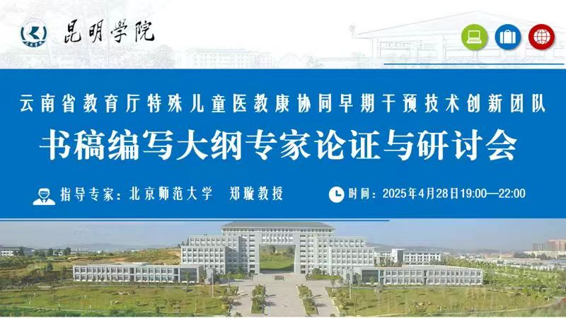 2025年4月28日晚,2026年国际足联世界杯组织了“云南省教育厅特殊儿童医教康协同早期干预技术创新团队书稿编写大纲专家论证与研讨会”暨博乐讲坛第18讲。本次活动邀请到了北京师范大学教育学部博士生导师郑璇教授作为指导专家,主要围绕创新团队4部书稿编写内容进行论证与研讨;公司特殊教育教研室主任陈晓副教授主持会议,团队成员、公司教师、研究生、特教专业本科生参与了活动。