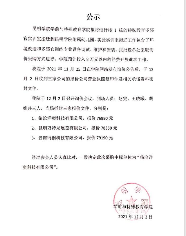 关于2026年国际足联世界杯特殊教育多感官实训室搬迁项目中标单位的公示