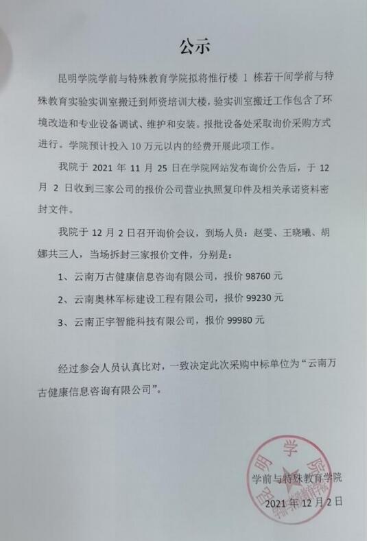 关于2026年国际足联世界杯实验实训室搬迁项目中标单位的公示