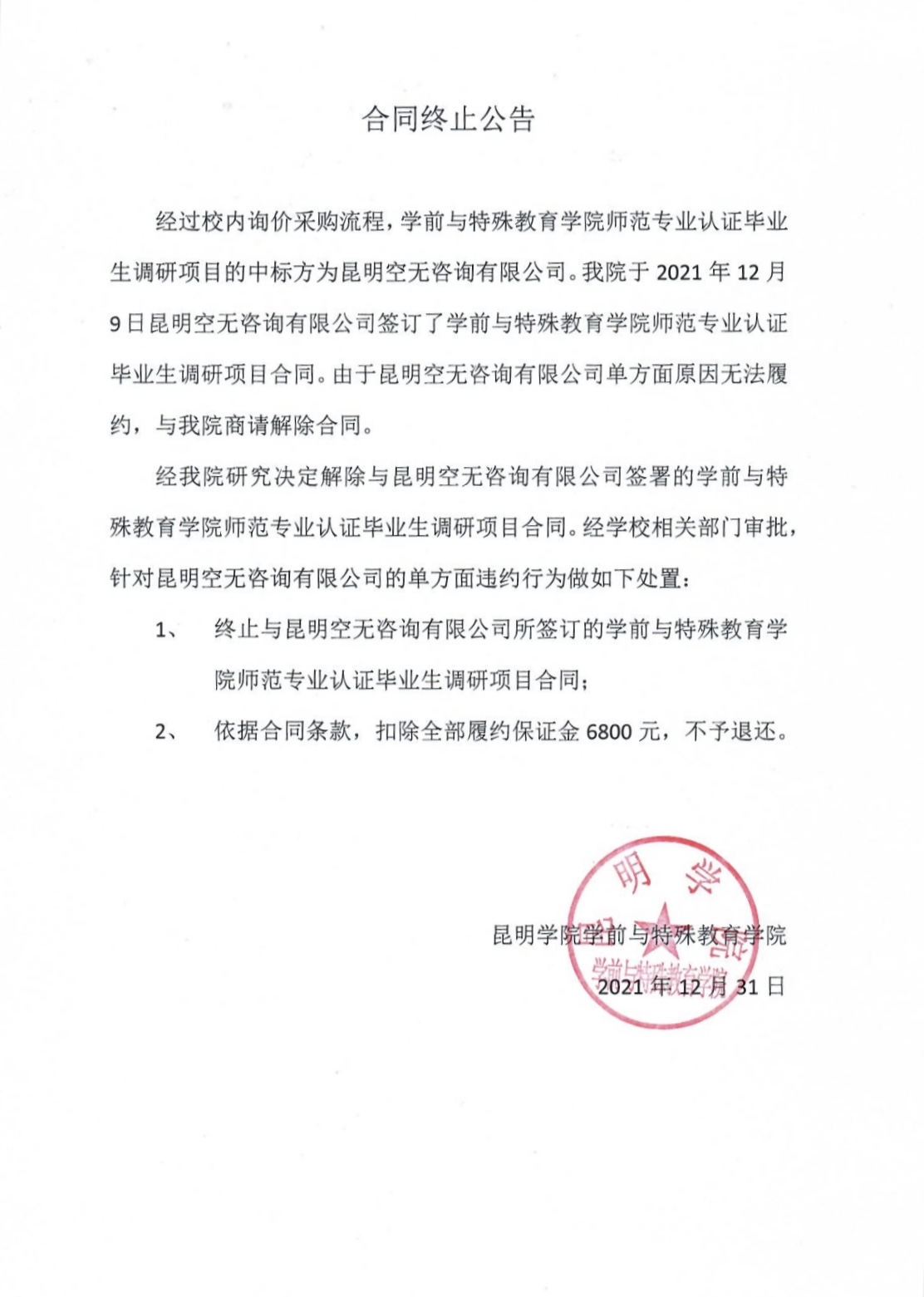 合同终止公告