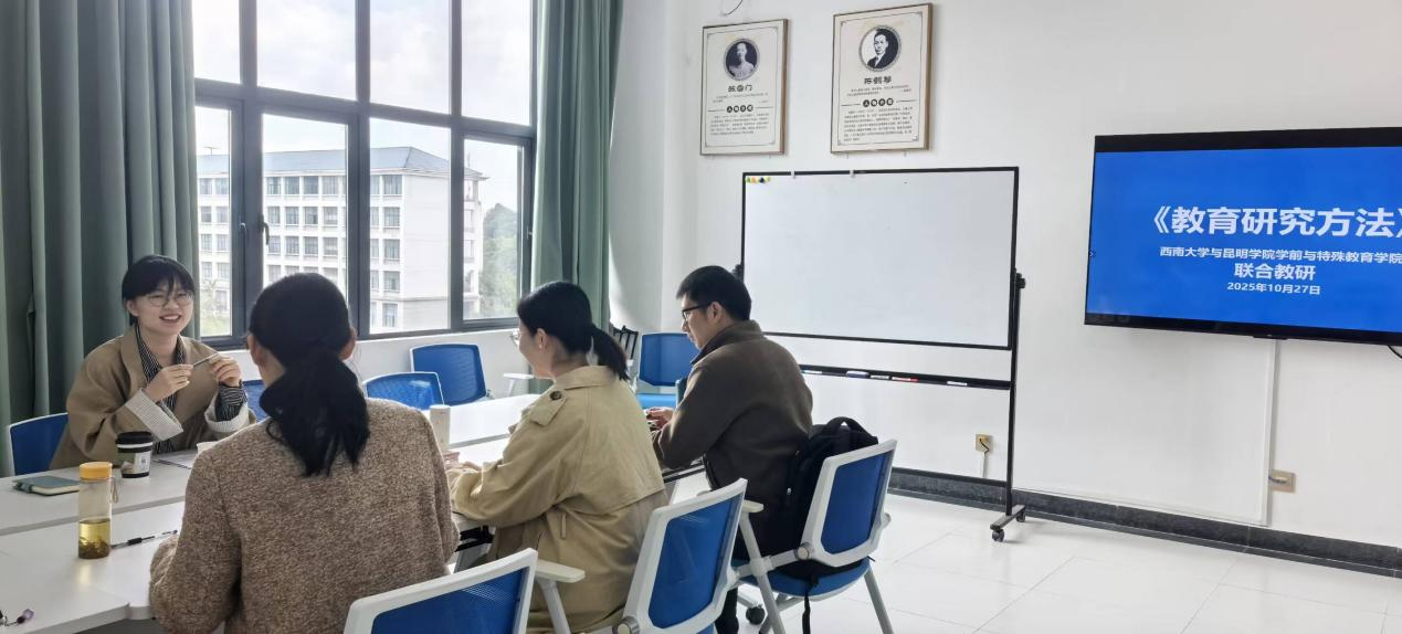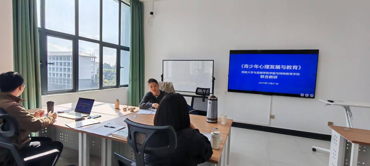 2025年10月27日,西南大学教育学部学前教育公司经理胥兴春、副经理余璐应邀到公司开展研究生课程思政联合教研,重点围绕《青少年心理发展与教育》《教育研究方法》两门基础学位课展开,公司相关课程负责人及课程团队教师参与讨论。