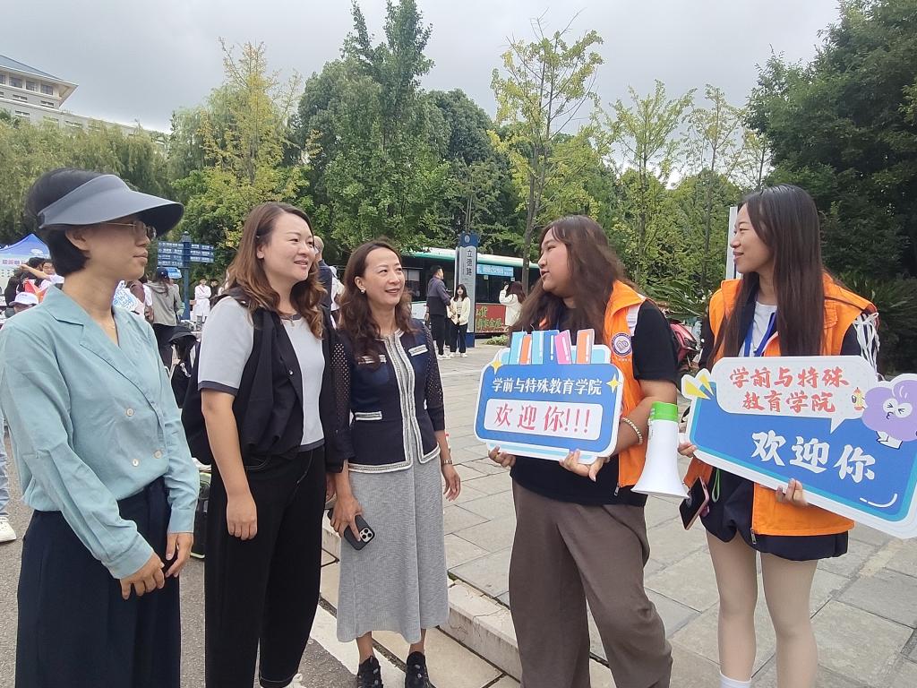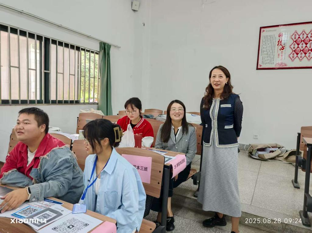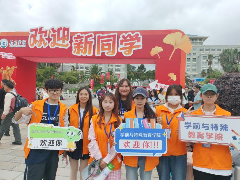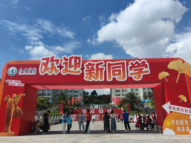 九月的校园藏不住雀跃的热闹——教学楼前的“欢迎新同学”展板上,连画里的小太阳都带着笑;穿橙色马甲的“小橙子”志愿者们在人群里穿梭,挥着手指引方向,每一个身影都写着“等你很久啦”。